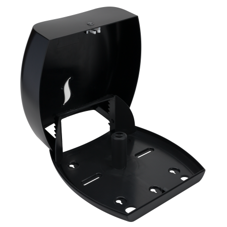 Диспенсер выполнен из ударопрочного пластика ABS черного цвета. Оригинальное смотровое окно в виде листка позволяет контролировать наличие бумаги в диспенсере.