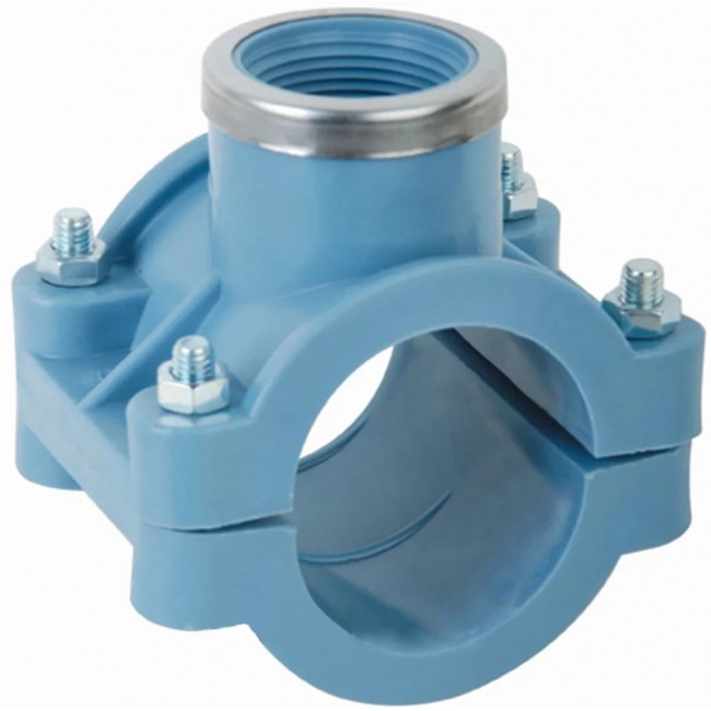 Хомут для врезки в трубопровод из полиэтиленовой ПНД трубы (седёлка) предназначен для быстрой и надежной врезки второстепенного ответвления трубы от магистрального трубопровода из полиэтилена. Конструкция седелки выполнена в виде обжимного хомута, труба зажимается с двух сторон двумя ее половинами, одна из которой, имеет отвод с внутренней резьбой для установки переходной детали на врезаемый трубопровод или запорной арматуры. Монтаж обжимной седелки производится быстро и легко с помощью болтов и гаек, а герметичность соединения обеспечивается уплотнительным резиновым кольцом. Врезка седелки не предполагает нарушения целостности трубы, при ее установке достаточно только просверлить отверстие необходимого диаметра.