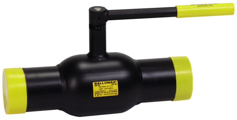 Корпус шаровых кранов BROEN BALLOMAX изготовлен из углеродистой стали P235GH / 09Г2С. Основным рабочим элементом крана является шар, выполненный из нержавеющей стали, марки AISI 304. Седловое уплотнение шара выполнено из тефлона с содержанием 20 % углерода, что практически исключает износ уплотнения в процессе эксплуатации крана. Кроме этого, благодаря наличию тарельчатой пружины (Сталь пружинная Ck75(50CrV4)), удается компенсировать температурные расширения шара и исключить возможность протечек. Шток (нержавеющая сталь W. Nr. 1.4305) оснащён уплотнительными кольцами (EPDM, витон), исключающие возможность протечки по штоку.
