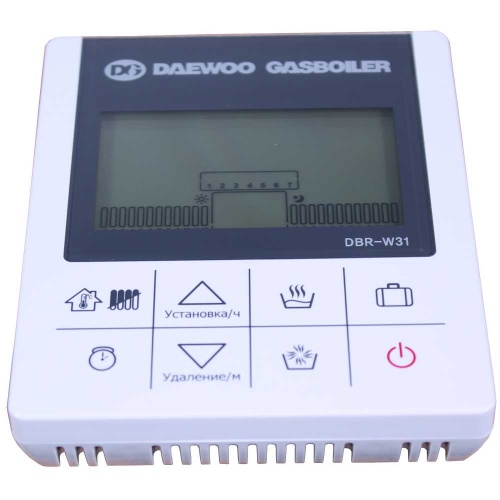 Выносной терморегулятор (пульт дистанционного управления), технический паспорт уже входит в комплектацию. К котлу Daewoo Gasboiler (ДЭУ Газбойлер) подойдут все виды генераторов, ему не нужны мощные стабилизаторы, вам не придется устанавливать УЗО и строить дымоход — можно купить специальный коаксиальный дымоход.