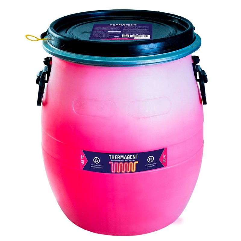 «THERMAGENT -65» — теплоноситель на основе высококачественного очищенного этиленгликоля. Предназначен для использования в качестве рабочей жидкости в закрытых системах отопления, вентиляции и кондиционирования для жилых и производственных зданий, систем охлаждения производственного оборудования, чиллеров, холодильных агрегатов и т.д. Подходит для работы в тяжелых климатических условиях, Температура начала кристаллизации составляет -65 °С. В состав добавлены присадки, придающие теплоносителю антикоррозионные, антивспенивающие и антибактериальные свойства. Теплоноситель имеет увеличенный срок службы* (до 10 отопительных сезонов).
