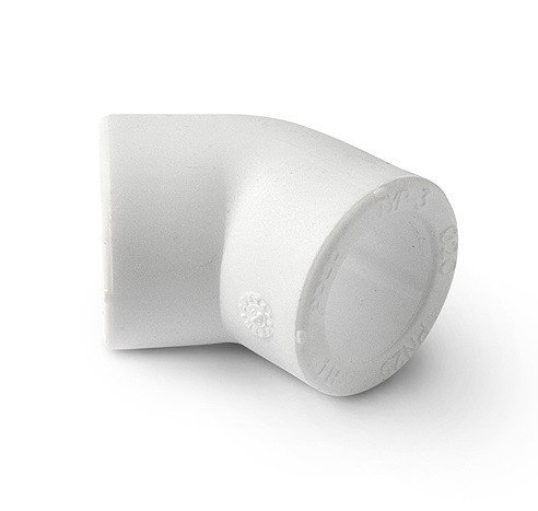 Двухсторонний угловой полипропиленовый фитинг (отвод), позволяющий изменить направление полипропиленового трубопровода на 45°. Монтаж осуществляется методом раструбной сварки.